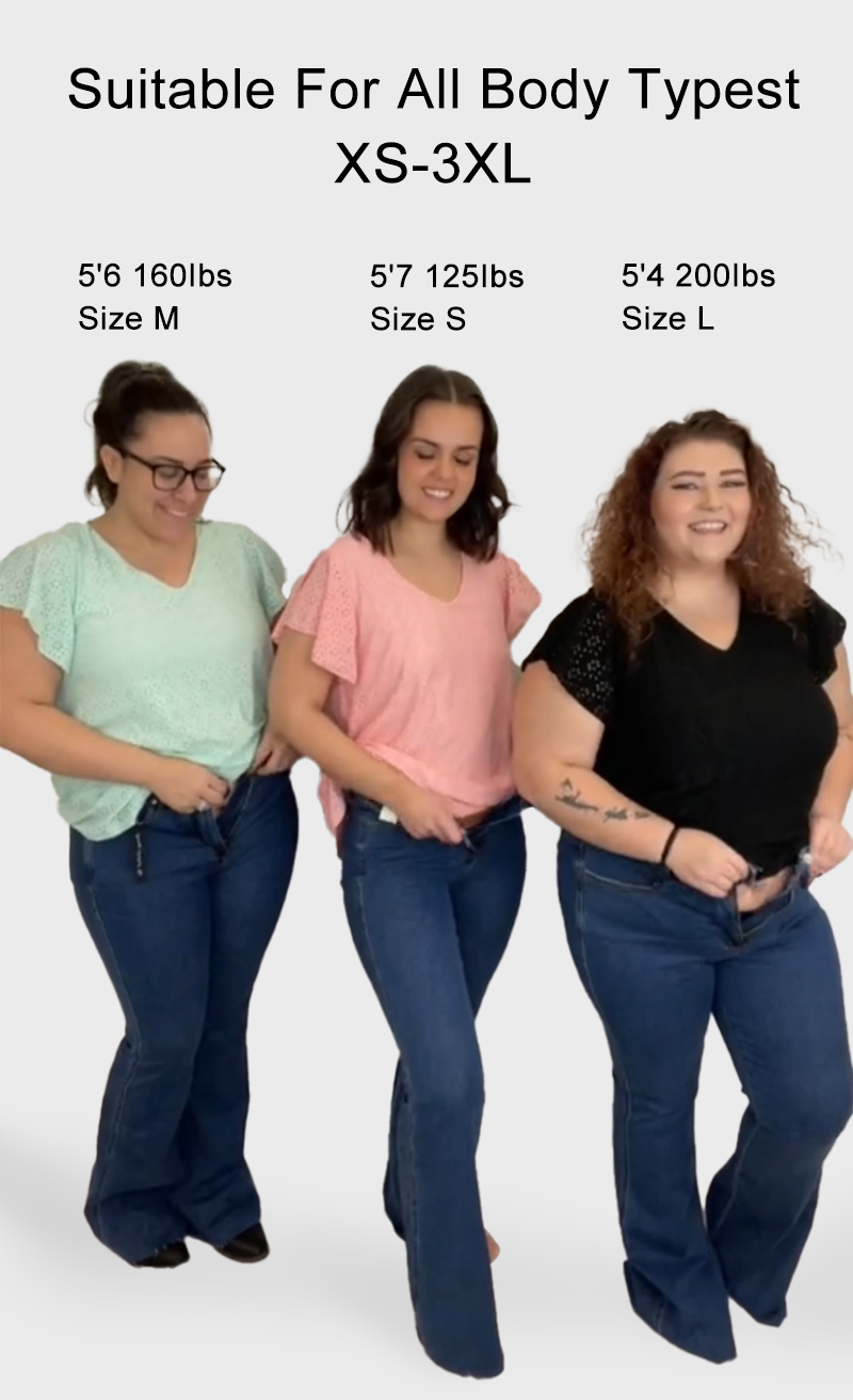 On-trend High Rise Flare Jeans have the ideal slimming fit — offers a flattering silhouette from the waist down in a full-length fit that holds you in at the top and flares out below the knee. The jeans come in dark and light blue shades, sleek and sexy to hug your curve.