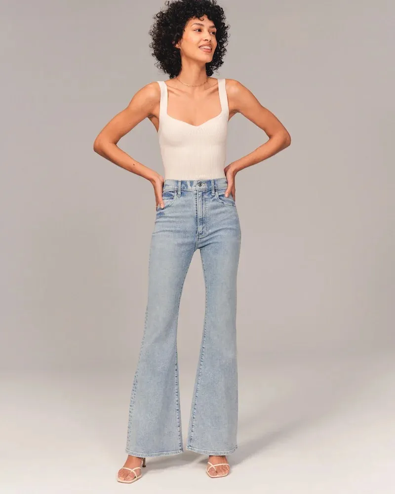 Super high-rise stretch flare jeans are a summer wardrobe must-have!