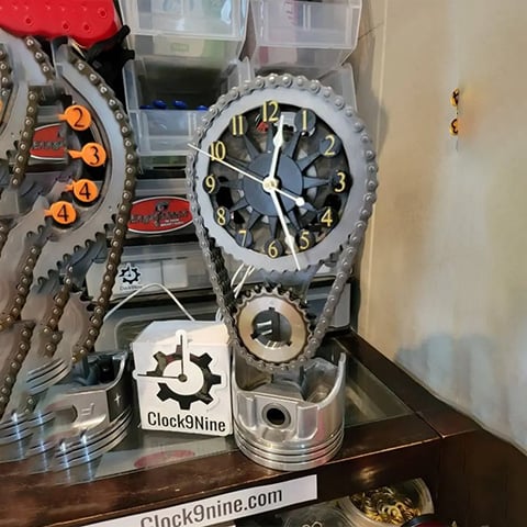 *This timing chain clock sits on any flat surface with the supplied base. This clock cannot hang on a wall.