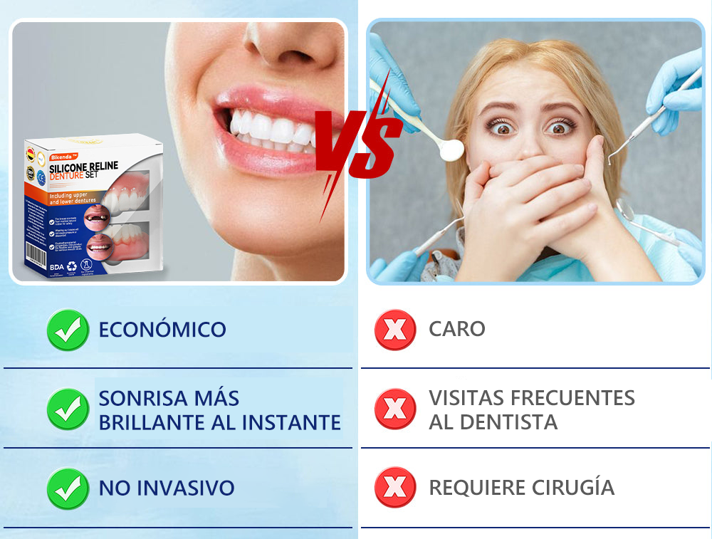 Voel je je soms onzeker over je glimlach of scheve tanden? Het is niet nodig om naar de tandarts te gaan voor een dure behandeling! De Bikenda™ Silicone Reline Gebitsprothese-set biedt een kosteneffectieve oplossing om een perfecte glimlach te krijgen.
