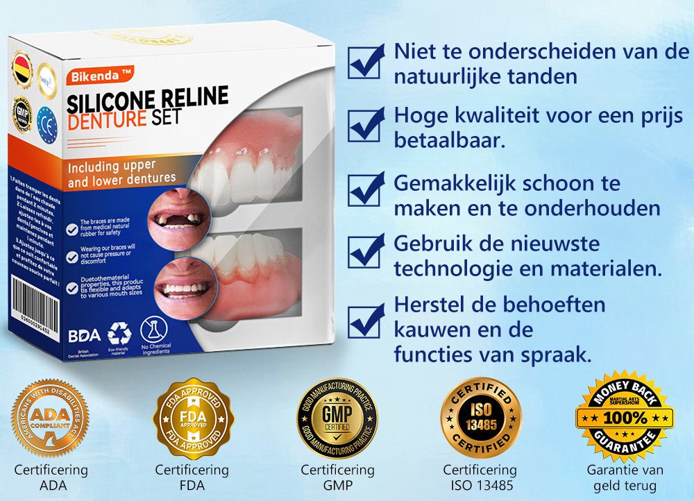 Waarom zou je kiezen voor de Bikenda™ Silicone Reline Gebitsprotheseset?
