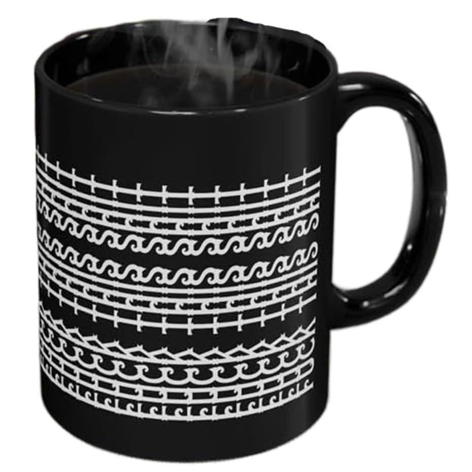 Modern and Subtle Design: At first glance. this mug features a sleek and modern pattern. Upon closer inspection. the design reveals repeated hidden text — a bold statement that remains nearly invisible when upright. but becomes clear as you take a sip. A perfect balance of humor and style.