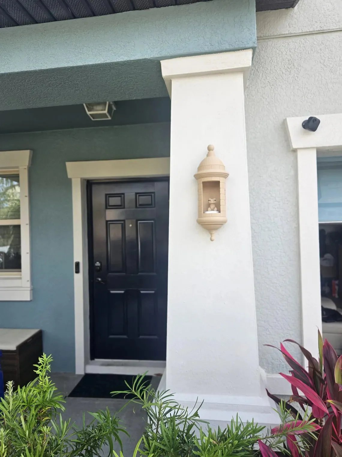 This wall-mountable decor includes a built-in light. adding a soft glow that highlights the Garita's design. The flat back makes it easy to attach to a wall or wooden backing.