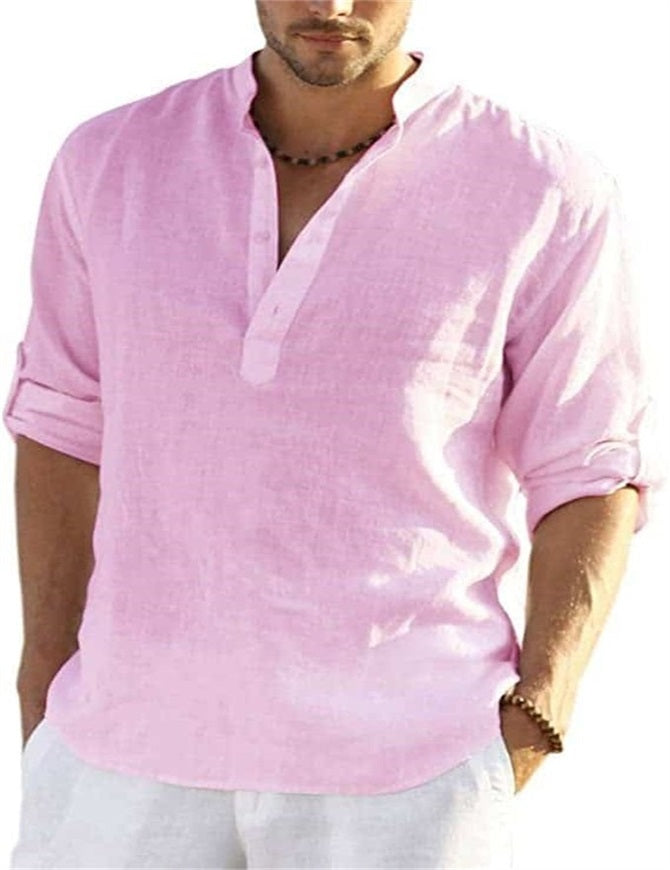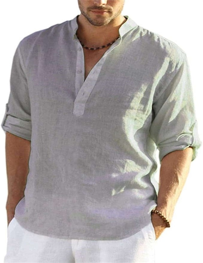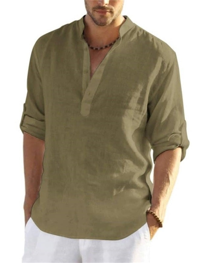 - 1 x Men's Cotton and Linen Henley Long Sleeve Hippie Casual Beach T-Shirt