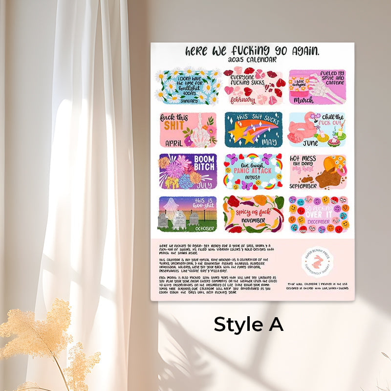 Here we fucking go again, get ready for a year of sass, snark and a fuck-ton of swears. This calendar is fulled with vibrant colors & bold designers that match the snark inside.