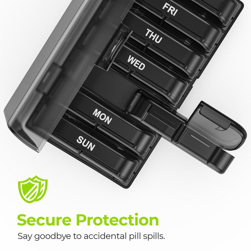 Built for long-term use, the shell and hinges are reinforced to withstand 10,000 uses. The UV-printed labels stay clear and won’t rub off, ensuring you can easily identify your pills without fading concerns.
