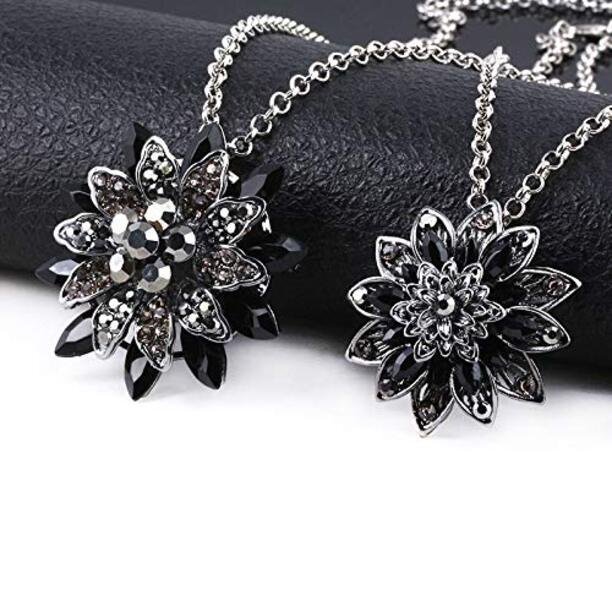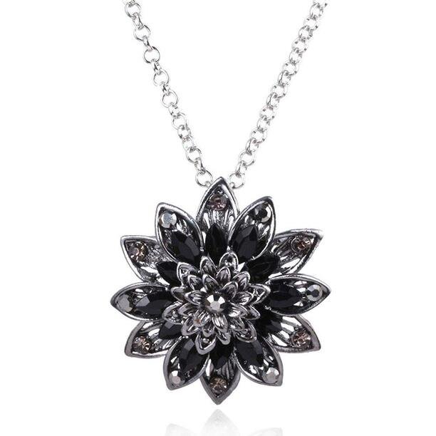 Black Dahlia Crystal Pendant Necklace