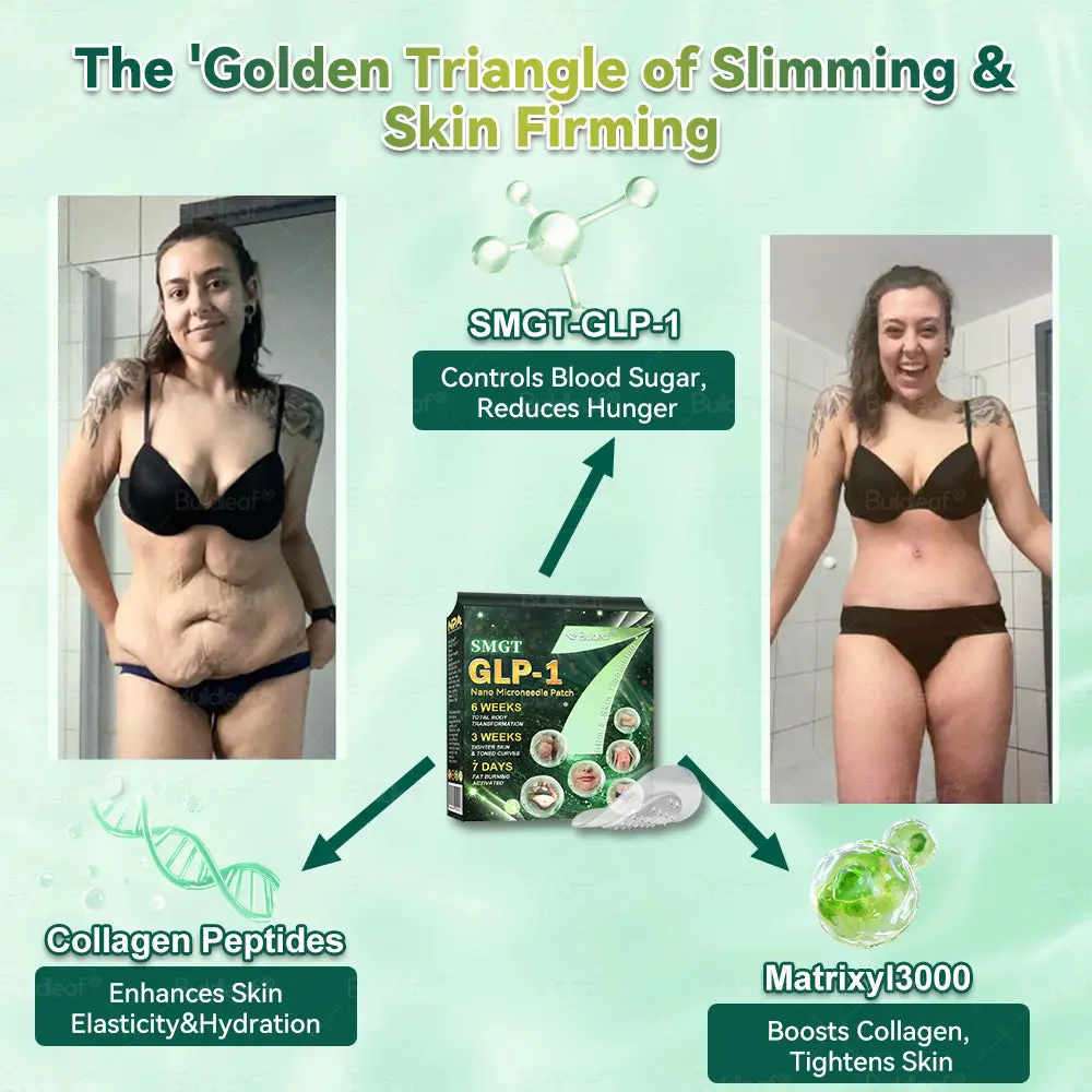 The Buildleaf® GLP-1 Nano Microneedle Patch. developed by The Obesity Society. combines advanced SMGT-GLP-1 technology with Matrixyl 3000 to promote weight loss. regulate blood sugar. and improve metabolic balance. It precisely delivers active ingredients to the skin's deeper layers. aiding insulin regulation. reducing fat. and enhancing health. Simultaneously. Matrixyl 3000 boosts skin regeneration. improving firmness and skin texture during weight loss. Designed by obesity experts after years of research. this innovative patch offers a comprehensive solution for body shaping. skin tightening. and achieving long-term health goals.
