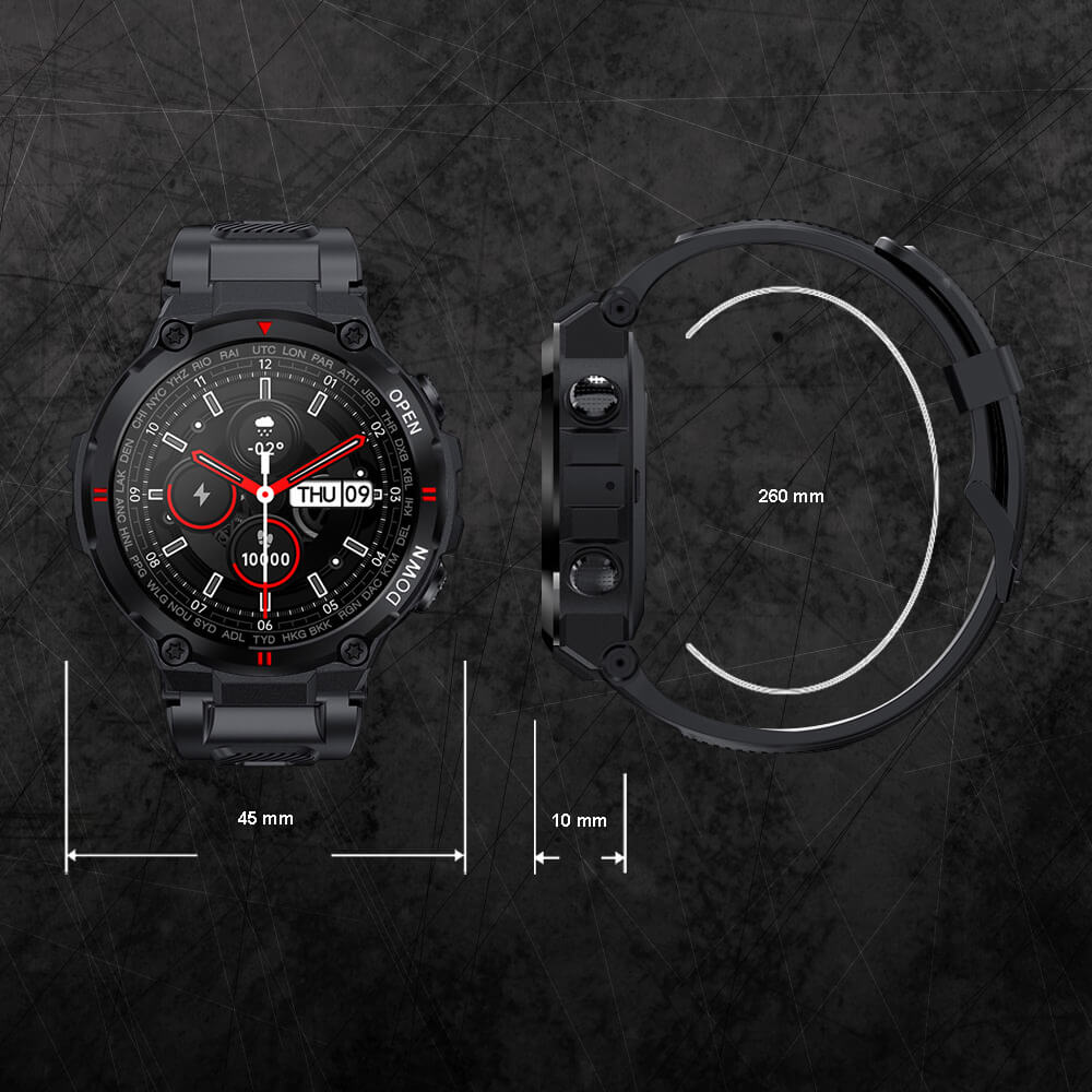 The Crusader’s watch body is 45 x 45 x 10 mm with a 1.3” 280x280 pixel HD display.Yes! The Psaud Crusader is water, shock, dust & freeze proof with a shatter and scratch resistant tempered glass!