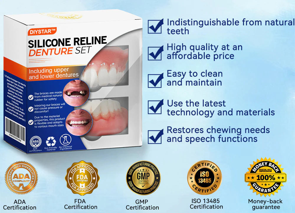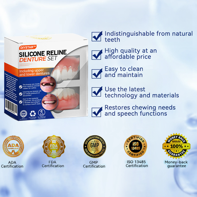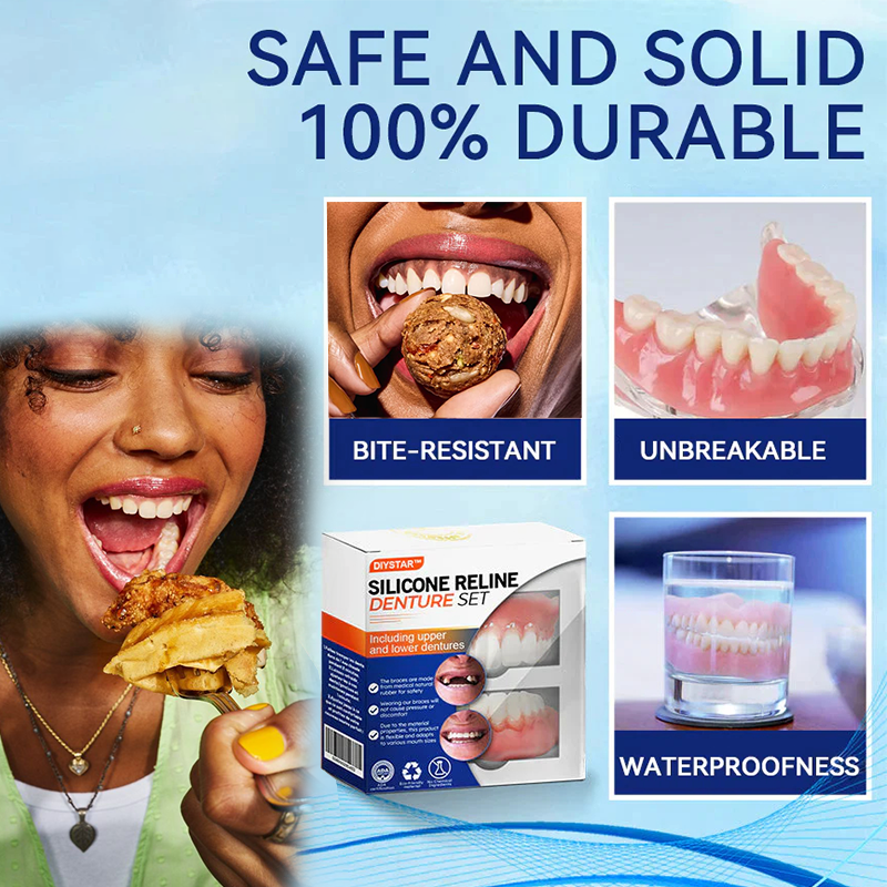 Do you sometimes feel insecure about your smile or crooked teeth? There's no need to go to the dentist for expensive treatment! The DIYSTAR™ Silicone Reline Denture Set offers a cost-effective solution to achieve a perfect smile.