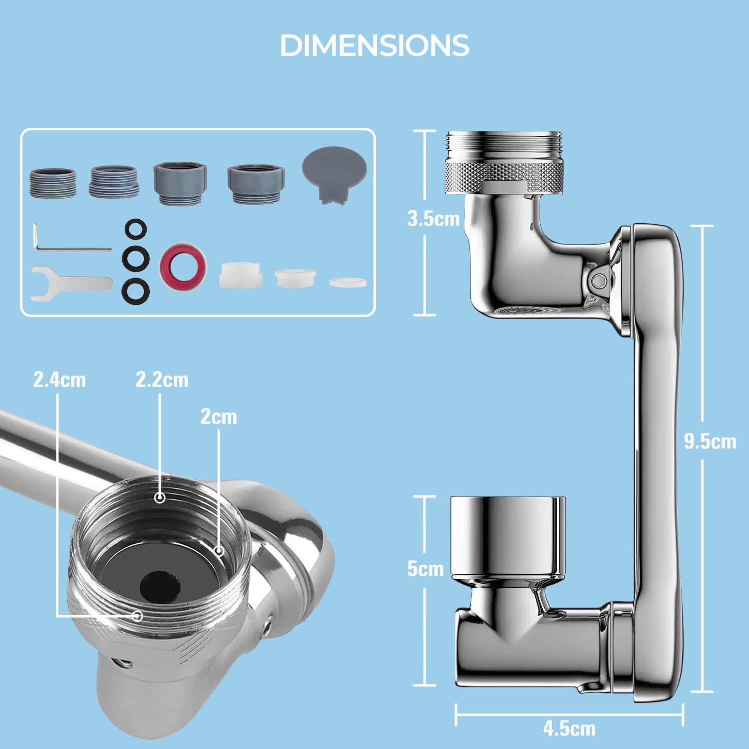 L'extension de robinet EasyClean peut effectuer une rotation de 1080°. Vous pouvez ainsi la plier à votre guise, permettant à l'eau de s'écouler dans n'importe quel coin de l'évier. Fabriquée à partir de matériaux de haute qualité, cette extension de robinet est dotée d'un mécanisme simple mais puissant qui assure un écoulement facile de l'eau.