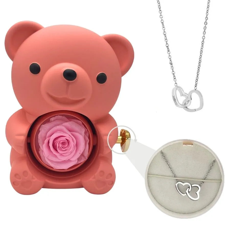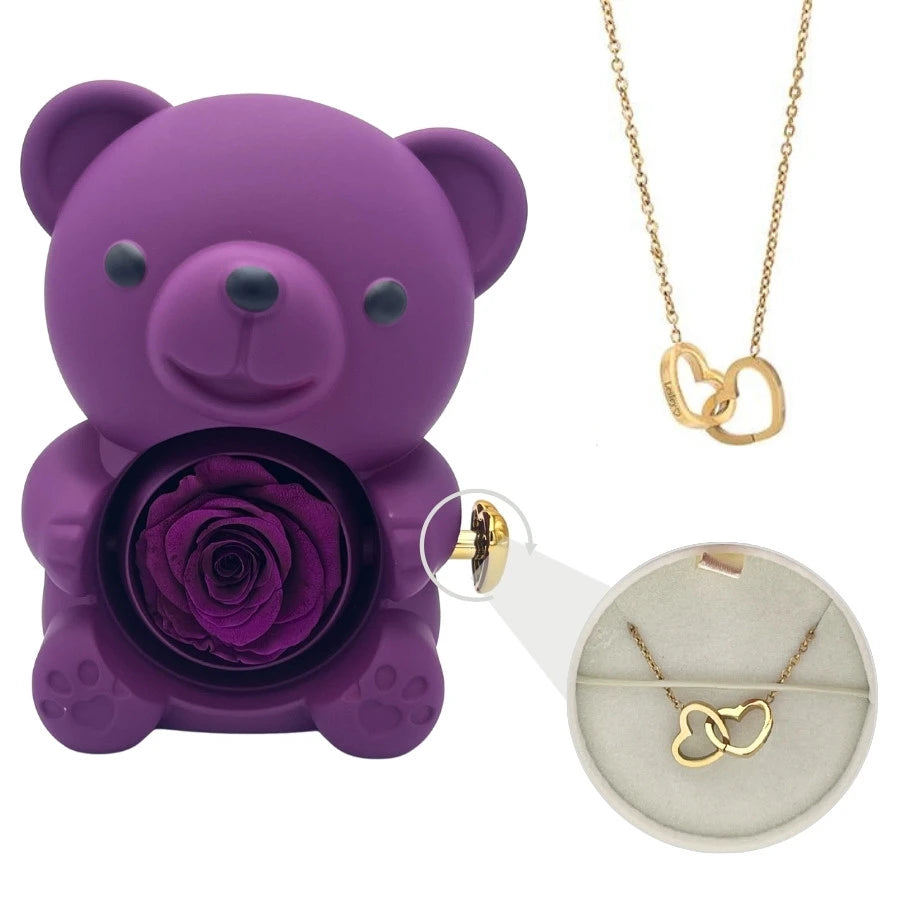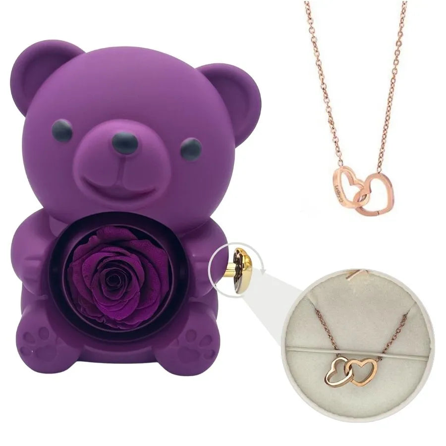 Eternal Bear - W/ Engraved Necklace & Real Rose