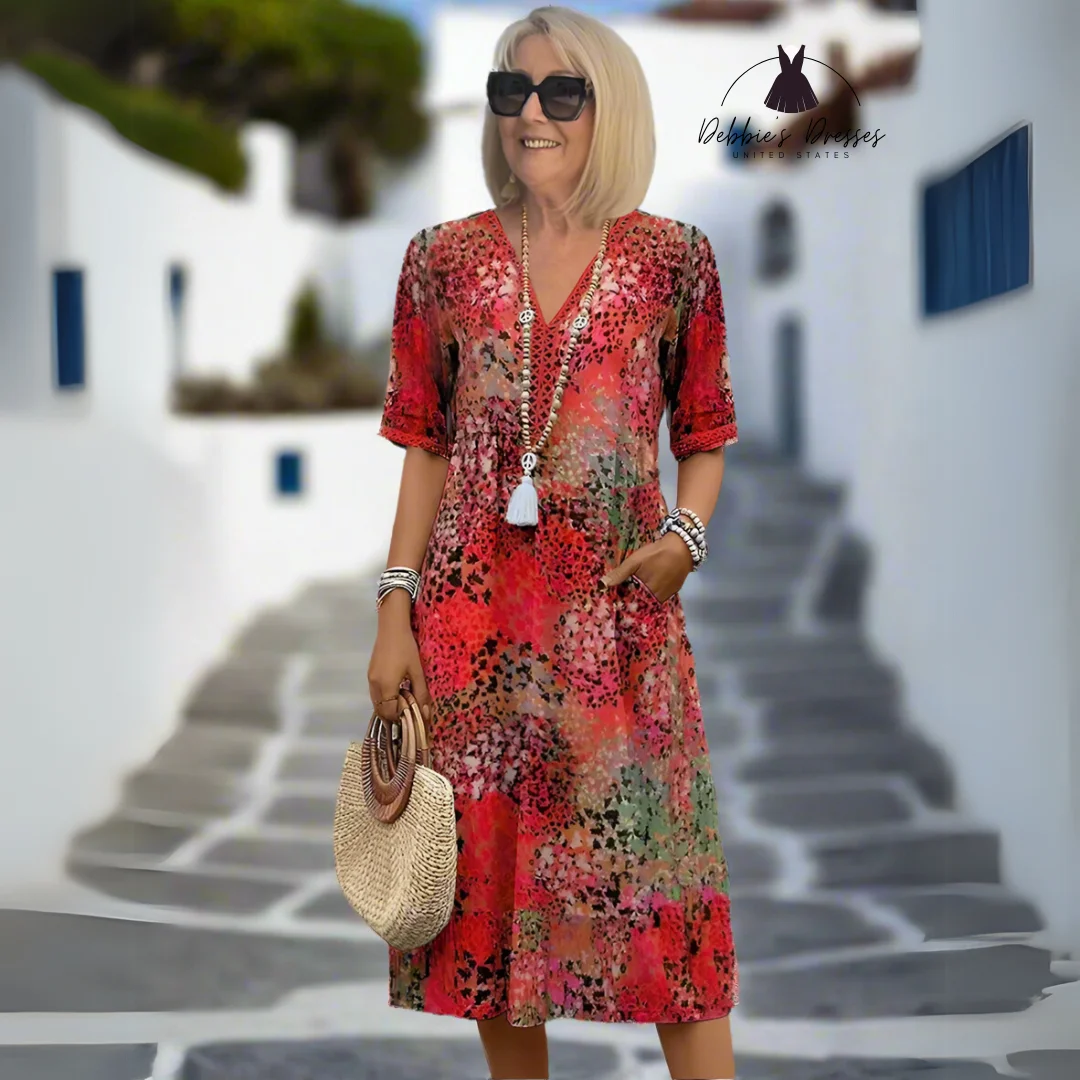 Radiate confidence with the Florencia - Vibrant Midi Dress, a standout choice for any occasion. Its flowing design and dynamic pattern make it the ultimate dress for comfort and charm combined.