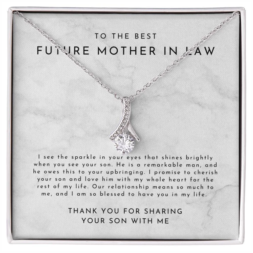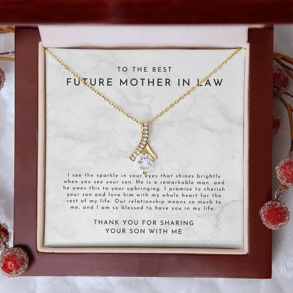 Give your Future Mother In Law the gift that symbolizes your never-ending love. This Alluring Beauty necklace features a beautiful petite ribbon shaped pendant. It is the perfect and unique gift for that special someone this holiday season.