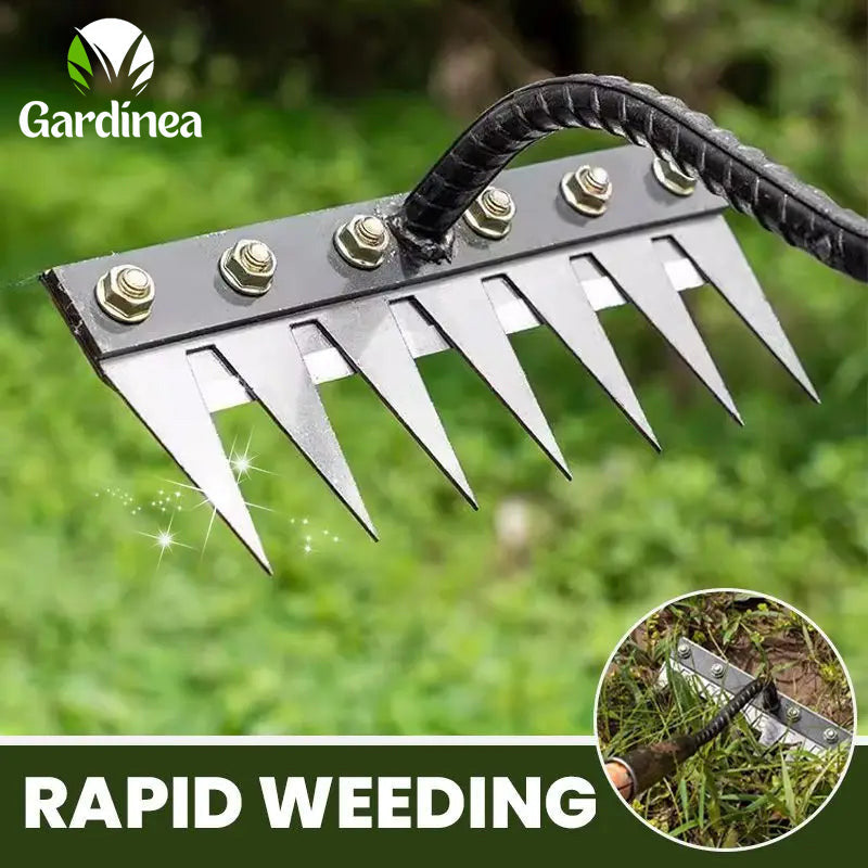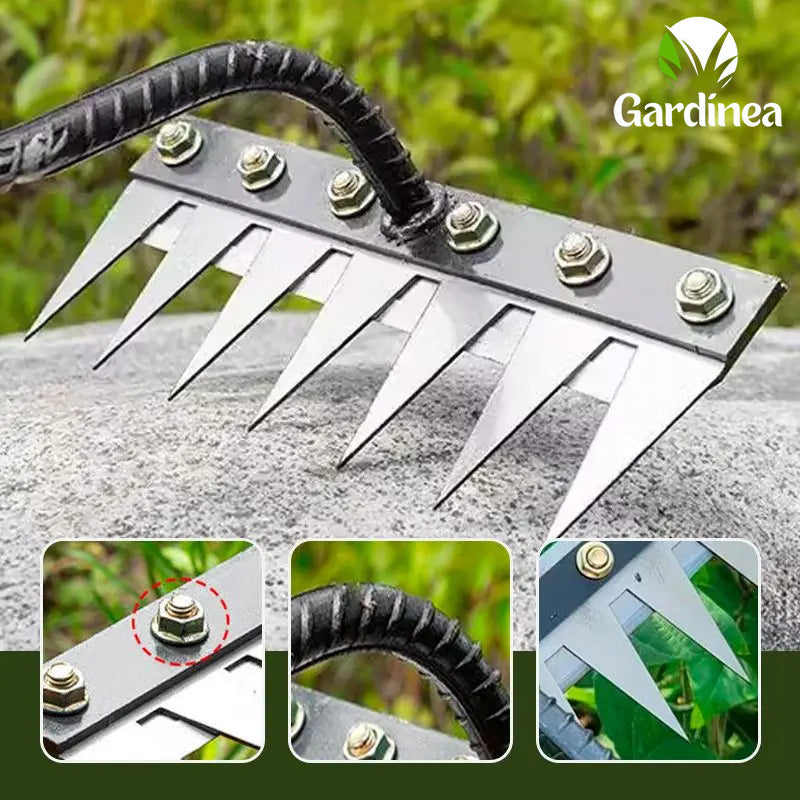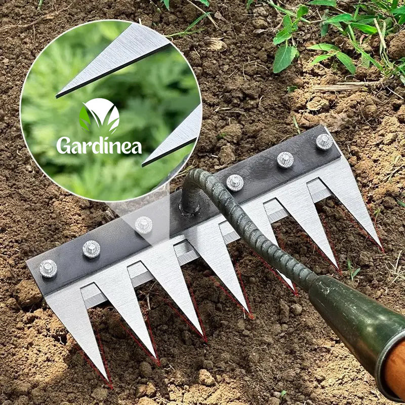 The Iron Weeding Rake makes removing weeds a breeze.Stop struggling with outdated tools and experience the power of sharp, reinforced tines that tear through stubborn roots with ease.
