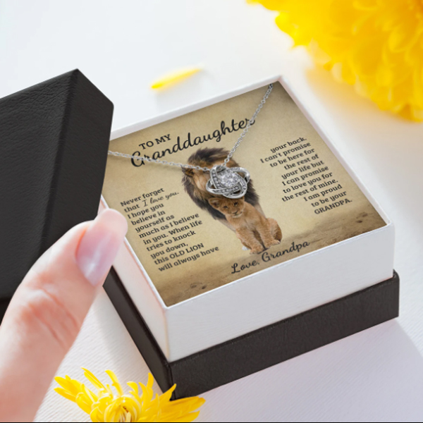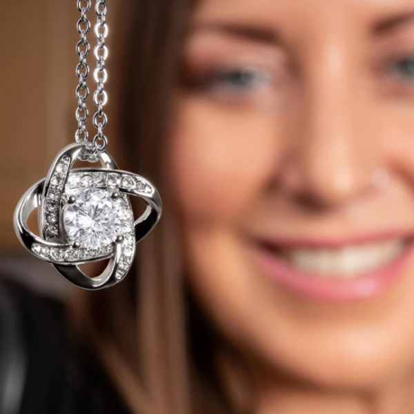 The love knot necklace represents the unbreakable bond between a father and his daughter.