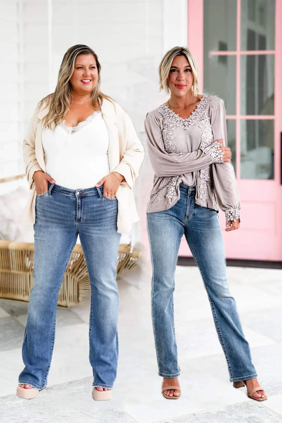 It gives a straight and narrow gal the appearance of an hourglass and it gives curvy gals a balanced figure. If you don't own Bootcut - grab these and give them a try! You will be blown away by how flattering they fit.
