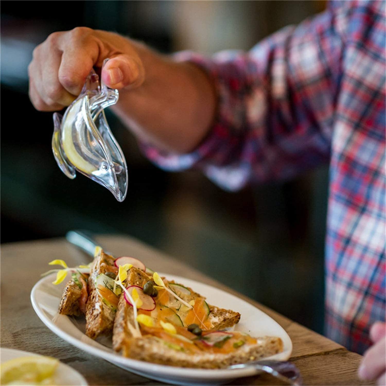 Easy to operate, very suitable for squeezing lemon and lime slices. Avoid spilling juice on your fingers.