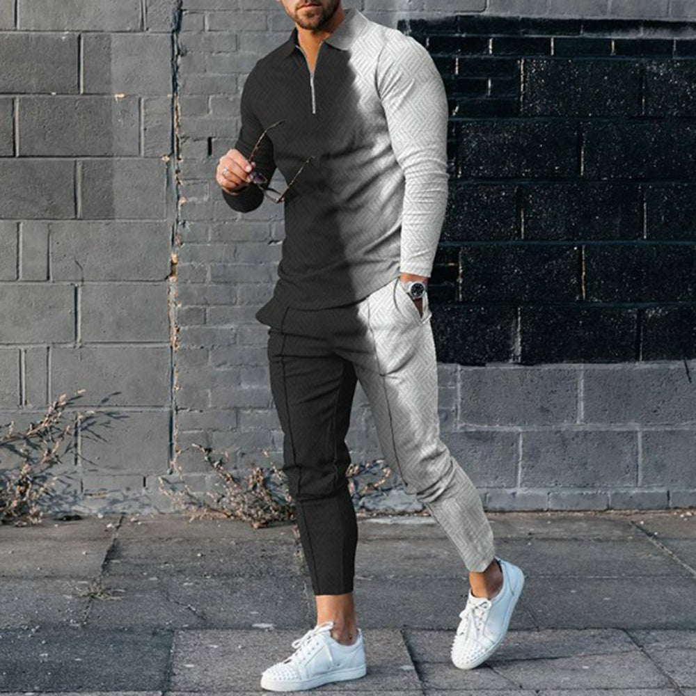 Men's Personalized Polo Shirt And Pants Two Piece Set