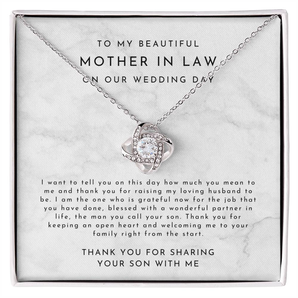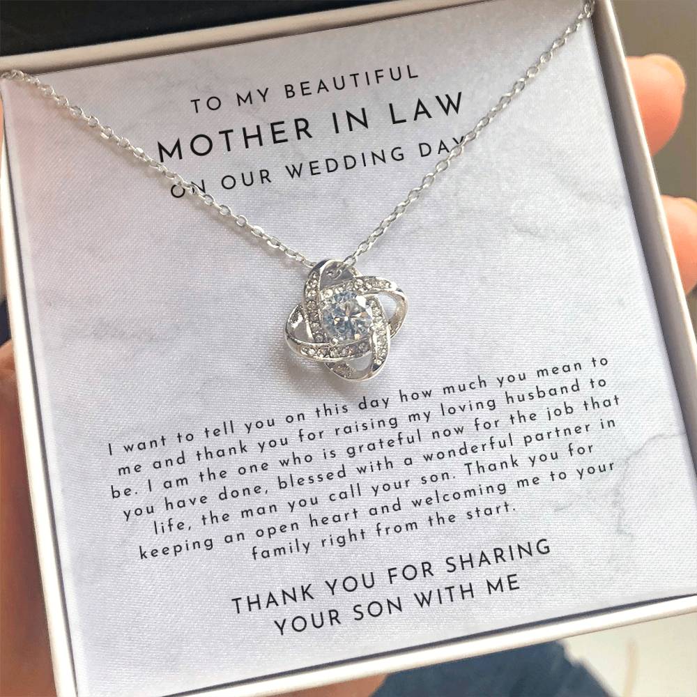 Give your Mother In Law the gift that symbolizes your never-ending love. This love knot necklace features a beautiful pendant embellished with premium cubic zirconia crystals. It is the perfect and unique gift for that special someone this holiday season.