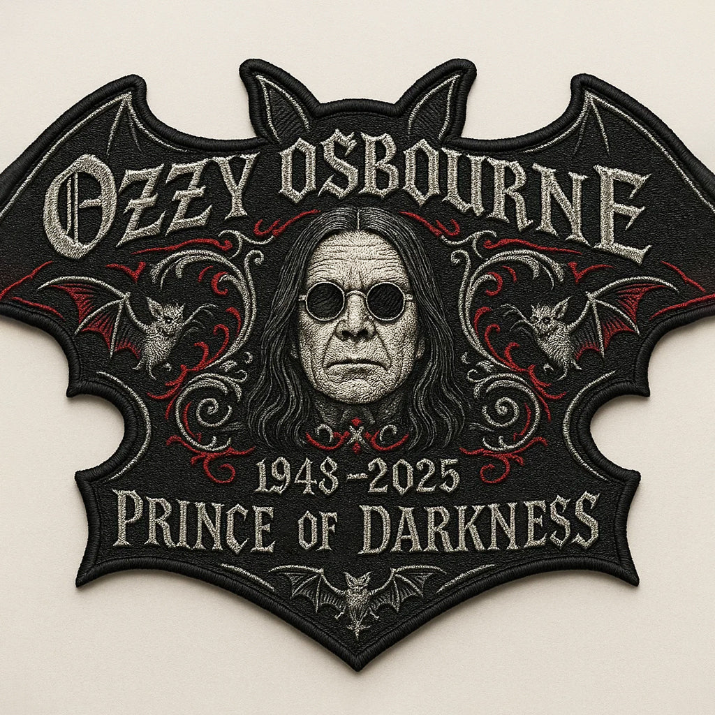 🦇This embroidered patch is a solemn yet powerful tribute to the late Ozzy Osbourne (1948–2025) — the voice of rebellion. the soul of metal. and forever the Prince of Darkness.