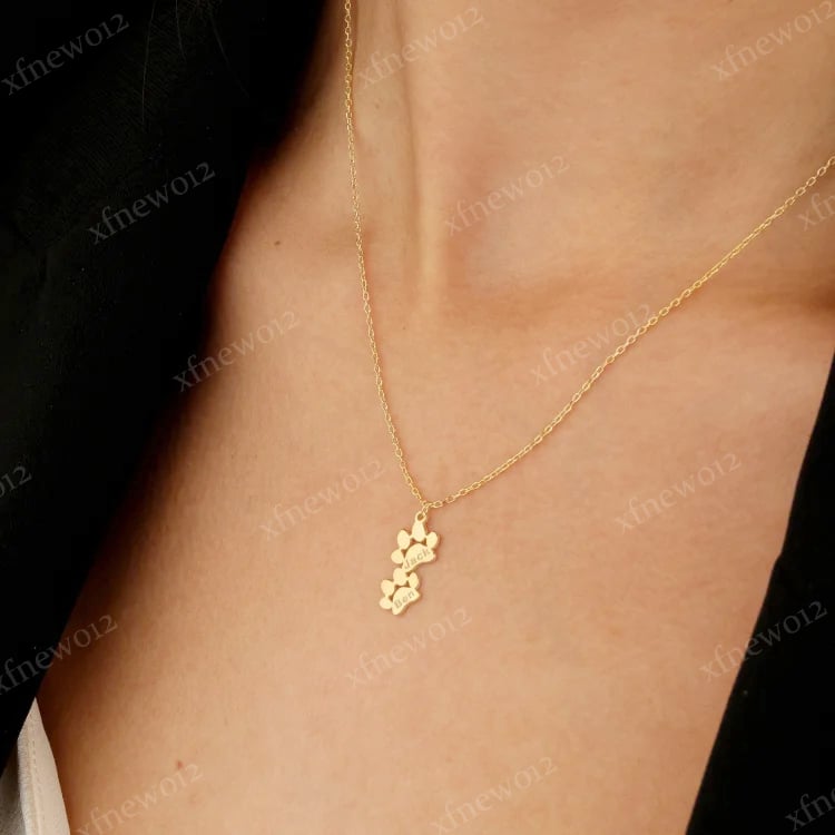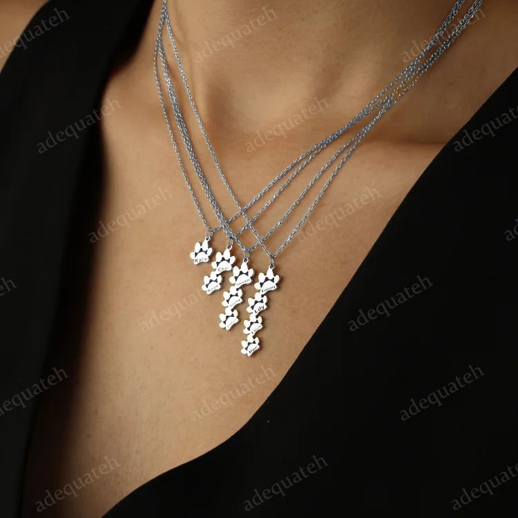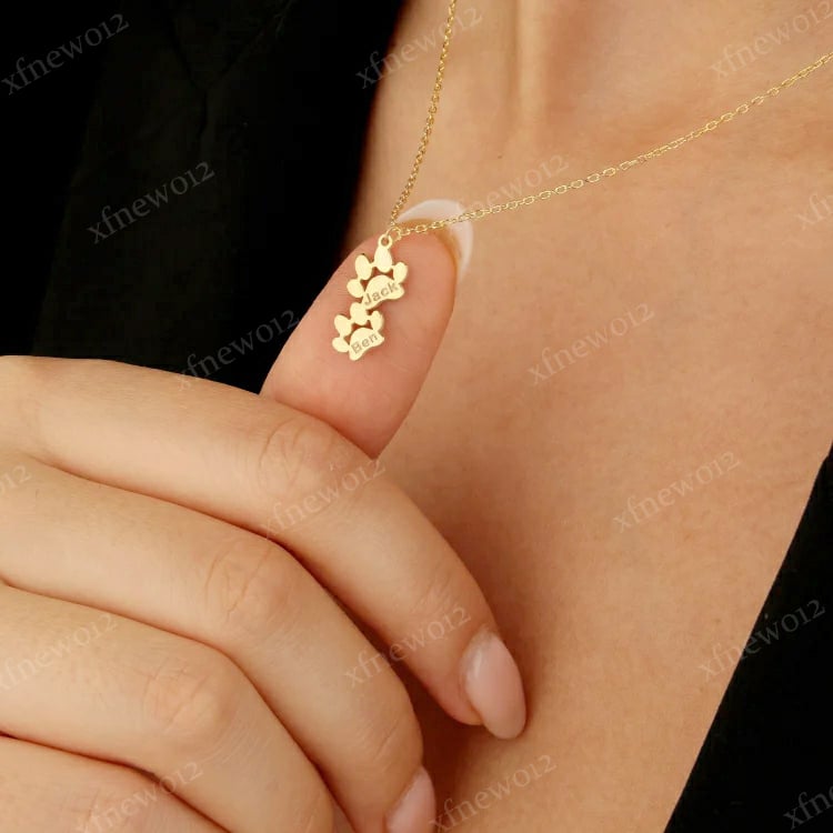 Paw Print Name Necklace Personalized Tiny Dog Paw Necklace Minimalist Paw Necklace Animal Necklace Pet Necklace Christmas Gift