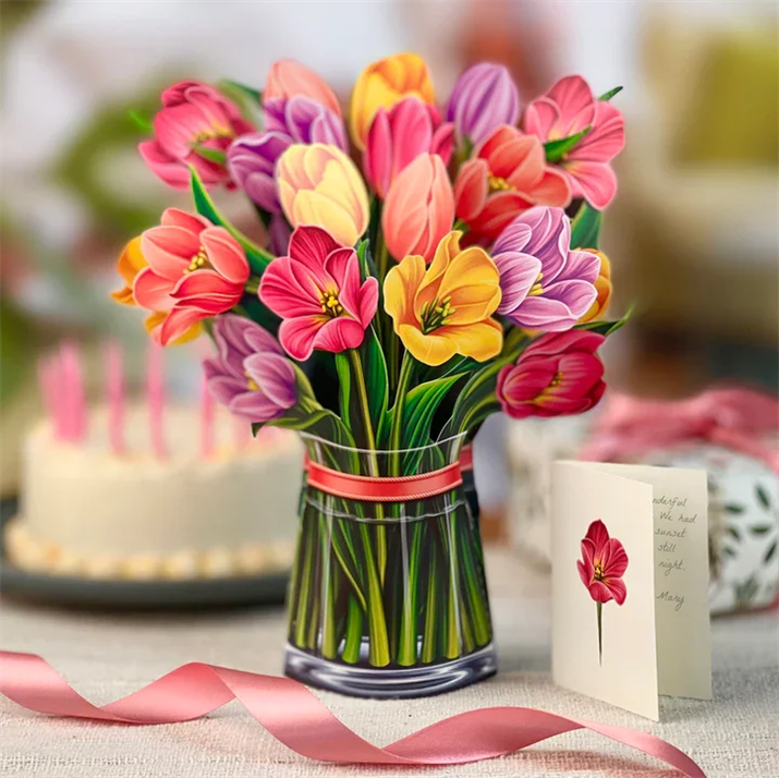 - Pulling out the bouquet will automatically pop open into a three-dimensional shape, which is unique and beautiful.