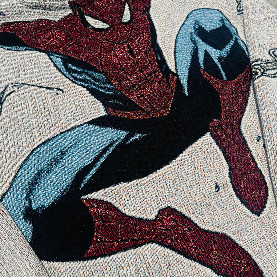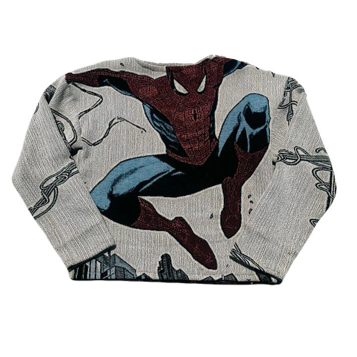 A sweater that tells a story. Soft cable knit with Spiderman details, designed tobe your go-to piece for cozy afternoons and memorable moments