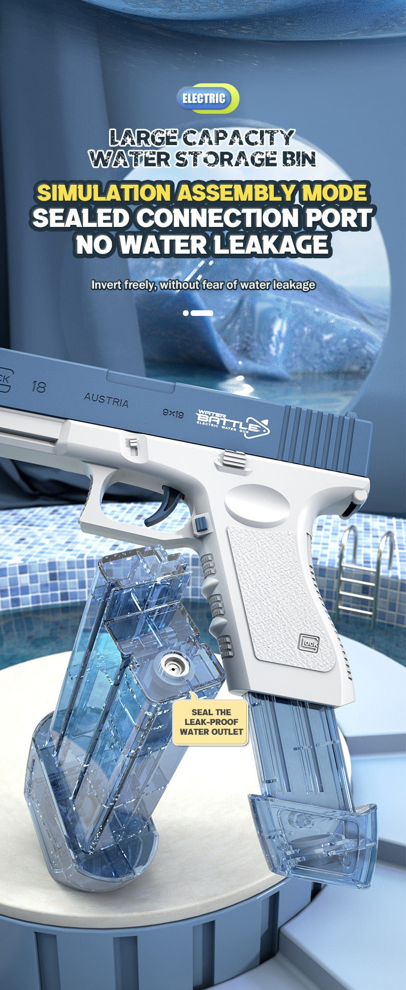 The Water Gun, come with an automated reload. Just dip the gun in water, and let the tanks fill on their own.