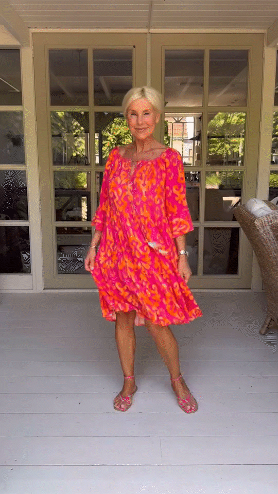 ✓ Vivid Abstract Print: Electric shades of pink and orange swirl together for a look that’s full of energy and personality.